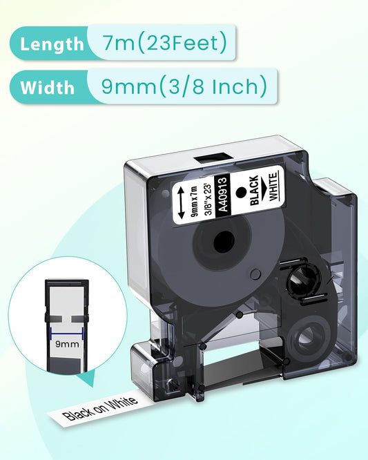 Oozmas Compatible avec Dymo Ruban 9mm D1 40913 a40913 S072068 Noir sur Blanc Etiqueteuse Compatible avec Dymo LabelManager LM160 LM210D LM260P LM280 LM360D LM420P, Pack de 5