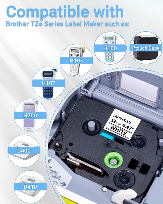 Oozmas Cinta Compatible con Brother P-Touch TZ Tape 12mm 0.47, Compatible con Brother Pt-1000 Pt-1010 PT-1080 PT-E100 PT-D600, TZe-231 TZe-335 TZe-T535 TZe-MQP35 TZe-MQG35