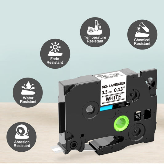 Oozmas kompatible 3.5mm Schriftband als Ersatz für Brother P-touch Bänder 3.5mm TZ Tape TZe-N201 schwarz auf weiß Label Tape Cassette Kompatibel mit Brother P-touch H105 D210 D400 H110 H107B Cube