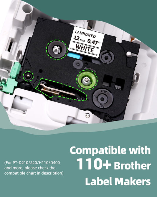 Oozmas Replace for P Touch Label Tape TZe Tz Tape 12mm 0.47 Inch Laminated TZe-231 Compatible with Brother Ptouch D410 D220 1280 1750 1910 2040 Label Maker Tape Refills, Black on White, 6 Pack