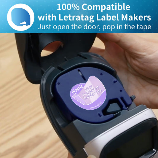 Replacement for Dymo Clear Label Tape Letratag Refills 1/2''x13 Transparent Plastic Compatible with DYMO 16952 Label Maker Refills Clear LT-100H 200B LT-100T Plus Labeler Printer, 12mm x 4m, 4-Pack
