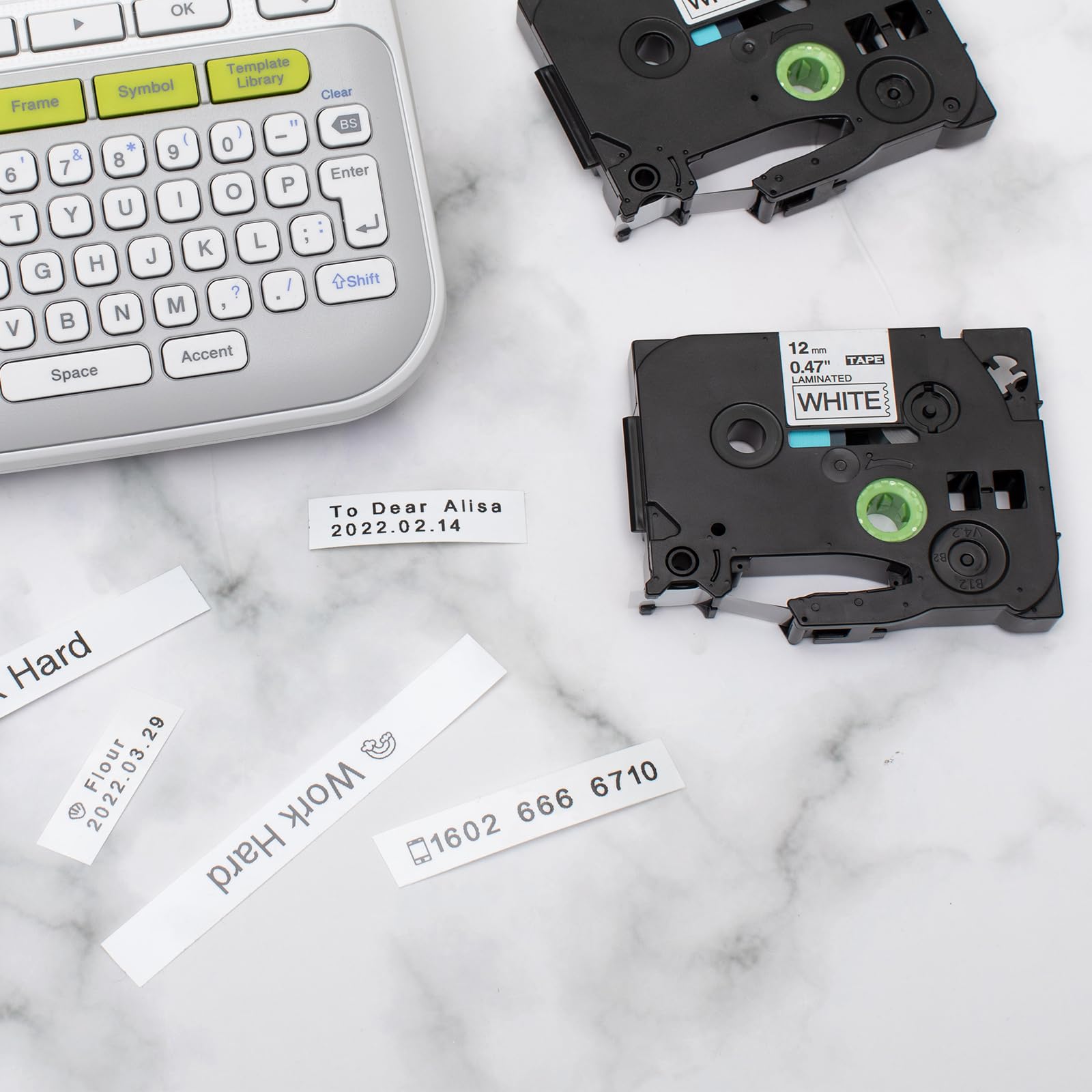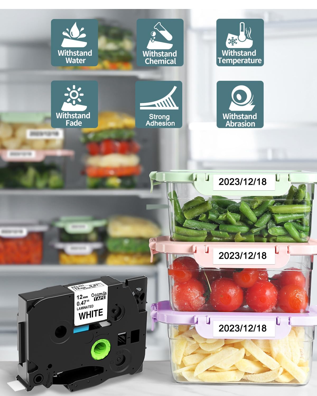 - Replace Brother P touch label tape 12 mm laminated: withstands temperature, fade, water and chemical. Won't leave sticky paper behind when peeled off surfaces. Won't smudge or smear