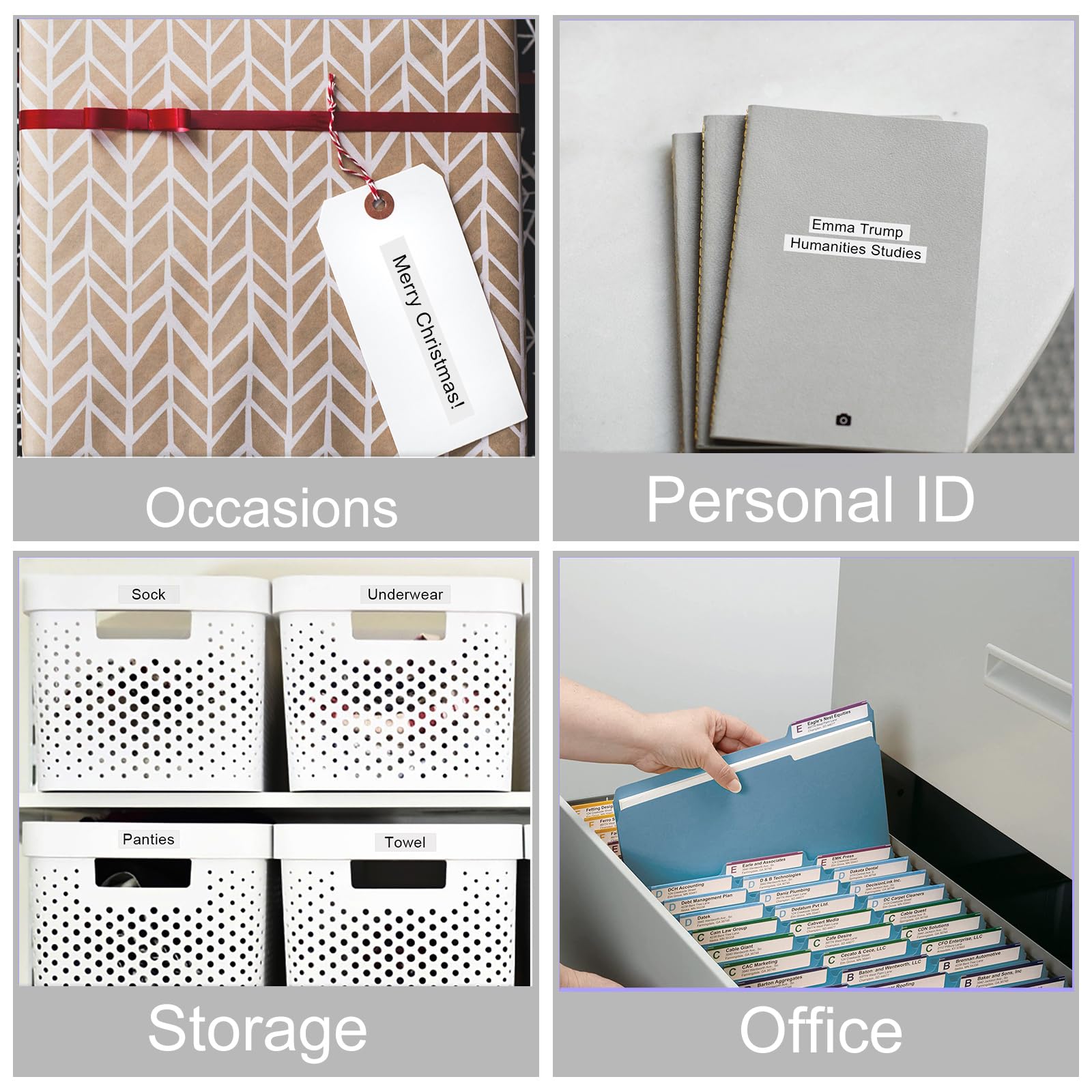 - Durable enough to withstand scrapes and abrasions, Compatible with p-touch tape 12mm for everyday labeling under normal indoor and outdoor use, including hot and cold environments; Used in:Cable/Wire Labels,Specially Formulated for Bending, Wrapping and flagging,suitable for: Audio, Video, Networking, Home Theater.
