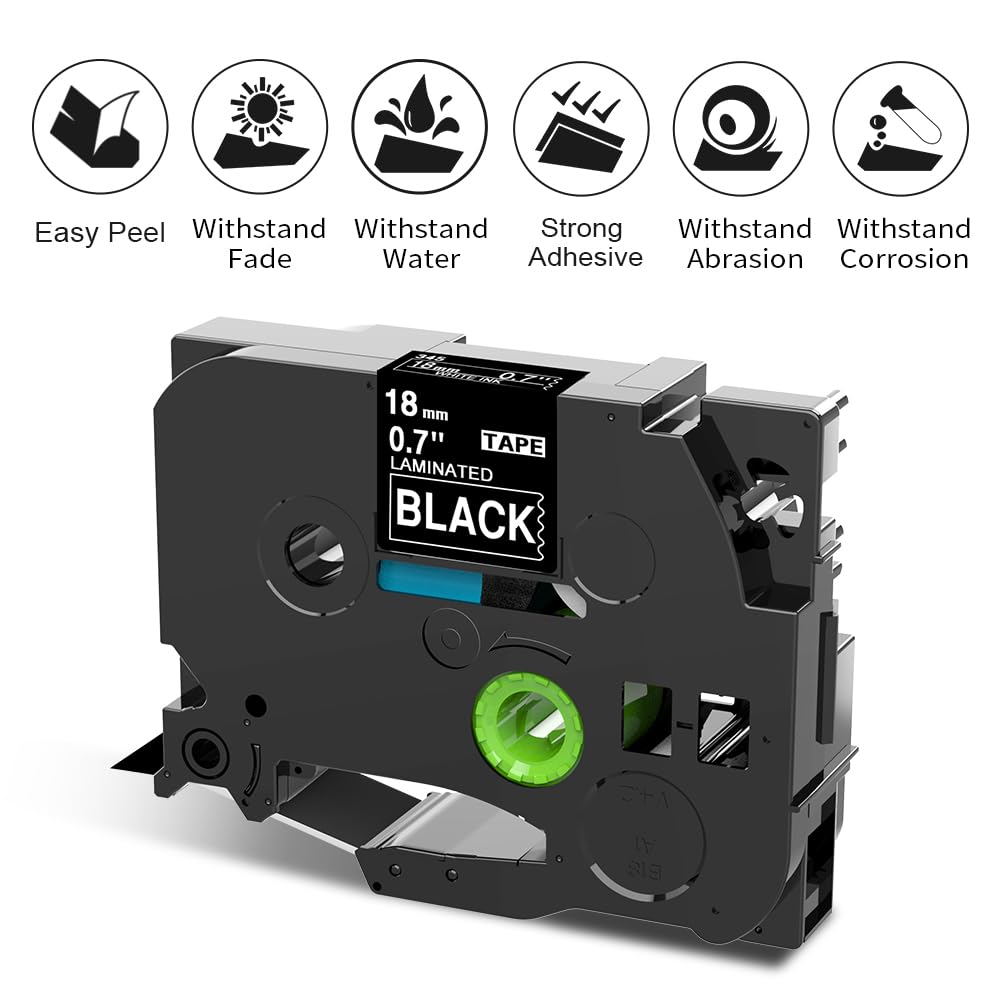 - Ersatz für Brother Ptouch Bänder 18mm Etikettenbände Wasserfest, Temperaturbeständig, Abriebfest, Chemikalienresistent. Das Beschriftungsband ist auch bei rauen Wetterbedingungen für den Innen- und Außenbereich geeignet.