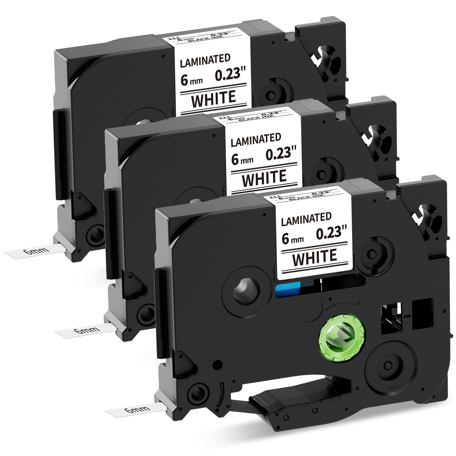 Oozmas 3x Ruban Cassette compatible pour Brother TZe-211 TZe211 6mm Ptouch 1000 Ruban, Compatible avec Étiqueteuse Brother Ptouch PT-H105 H107B H100LB E100 H110 D210, Noir sur Blanc