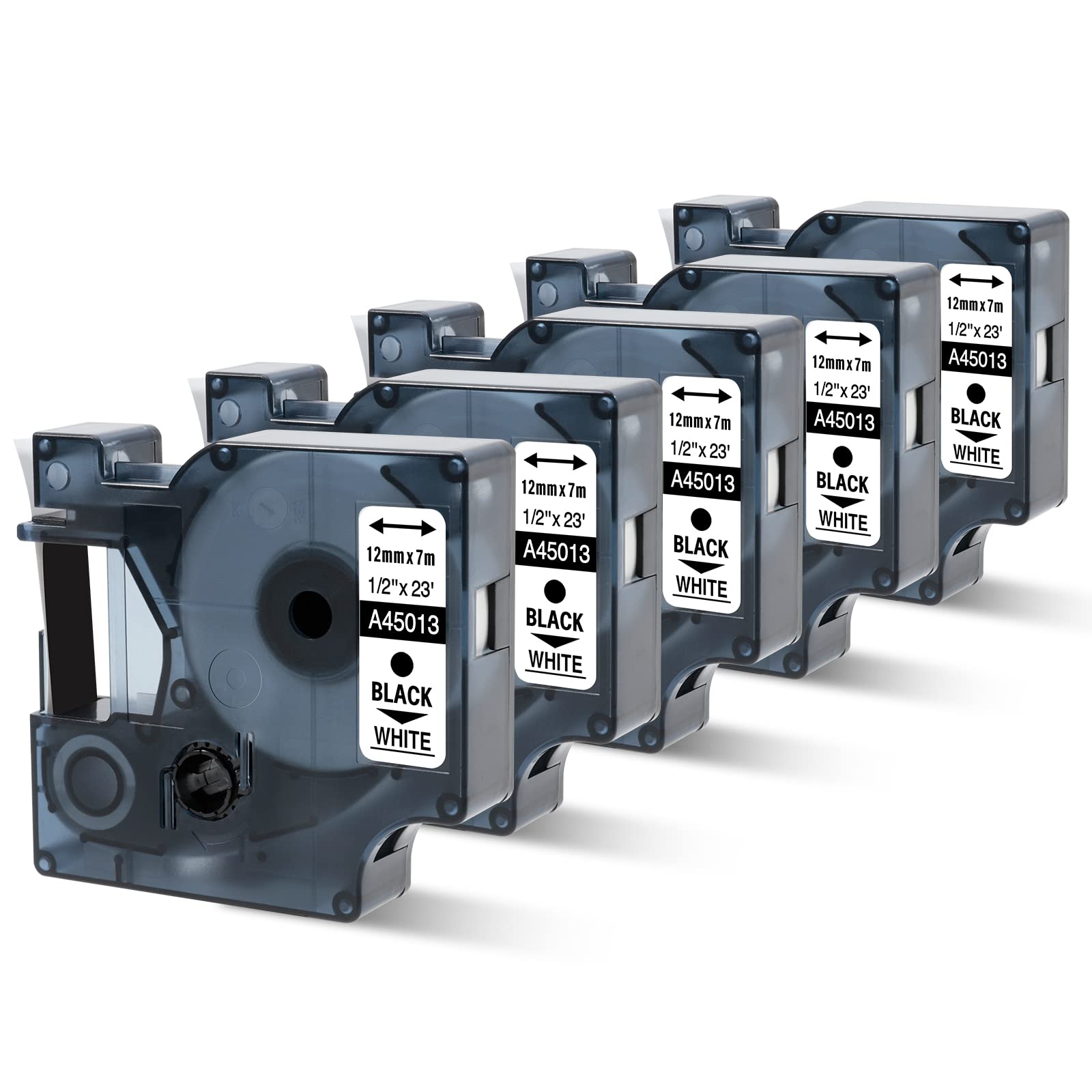 Oozmas a45013 Compatible with Dymo Label Tape Replacement for Dymo D1 Tape 45013 12mm x 7m Black on White, Compatible with Dymo LabelManager 160 210D 360D 420P 450D 500TS, 5-Pack