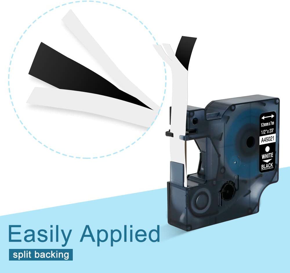 Oozmas Cinta de etiquetas Compatible con D1 45021 blanco sobre negro, 12 mm x 7 m, compatible con Dymo LabelManager 160 210D 360D 420P 450D, paquete de 5