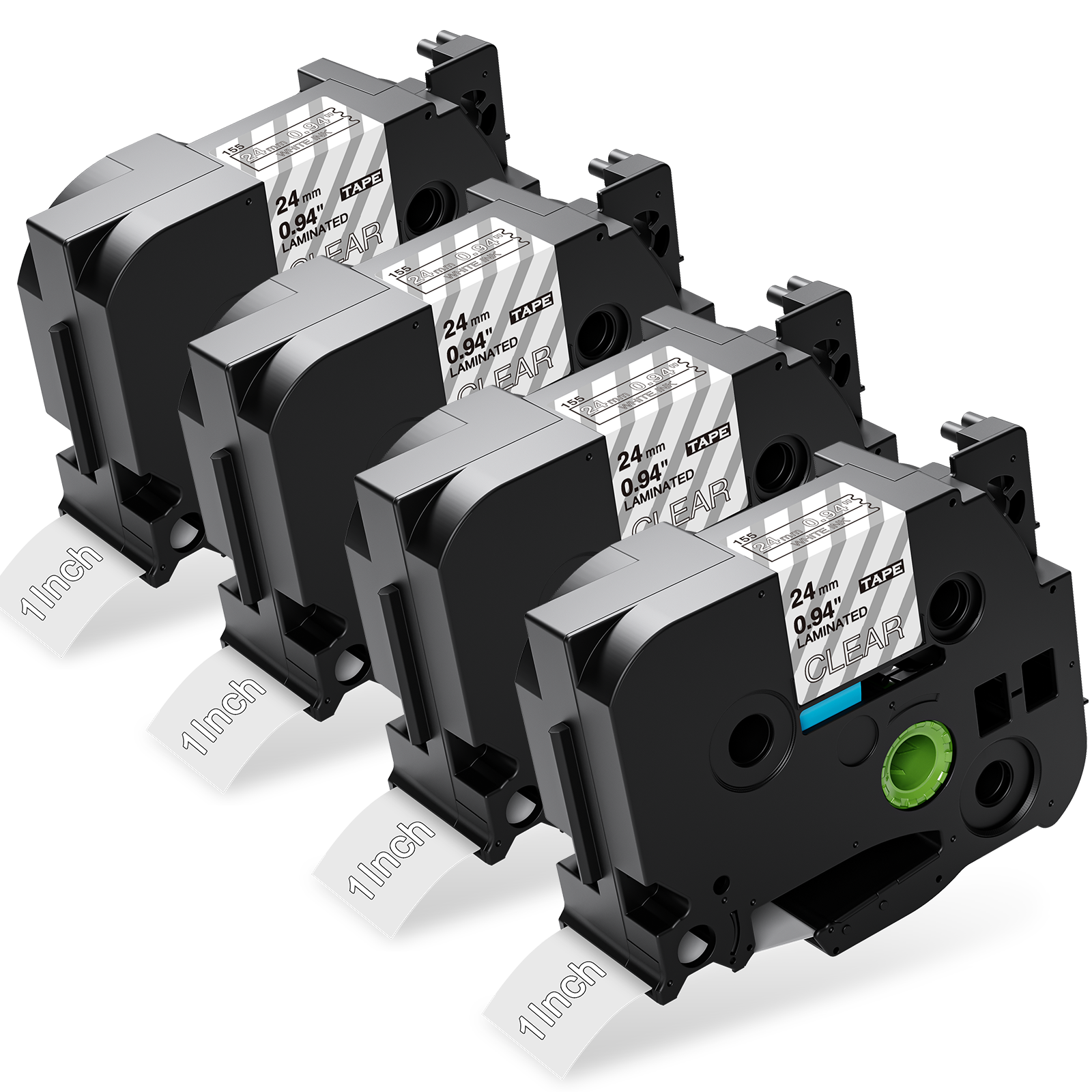 Oozmas Compatible 24 mm Label Replacement for Brother White on Clear Tape 24mm TZ TZe-155 Standard Laminated 1" P-Touch Tape Work for Brother PT-P710BT PTD600 PTD600VP PTP750W Label Maker, 4-Pack…