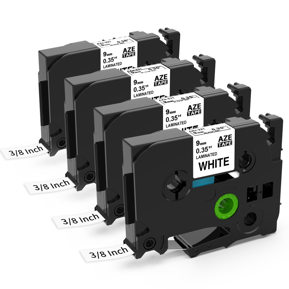 TZ Tape 9mm 0.35 Laminated White Replacement for P Touch Label Tape 3/8 Inch TZ TZe-221 TZe221 Compatible with Brother PT-D200 1280 1180 1830 Label Maker Tape Refills, 8m (26.2 ft), 4 Pack…